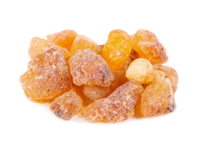Если сделать надрез на стволе дерева, из него начинает выделяться густая, ароматная жидкость, напоминающая по виду и консистенции смолу. В ее составе содержится примерно 50–66% смолистых веществ, 35–47% камеди и около 3–8% эфирных масел, что делает эту субстанцию особенно востребованной в фармацевтике, косметологии и ароматерапии.
